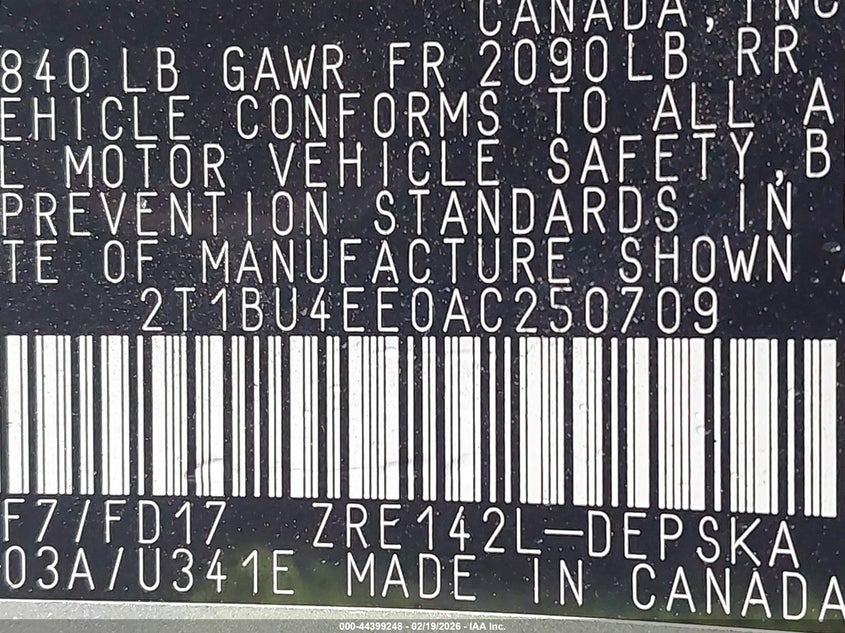 • 2T1BU4EE0AC250709
