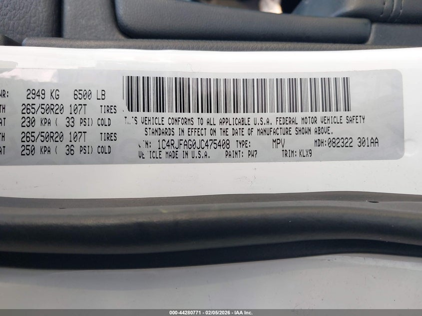 • 1C4RJFAG0JC475408