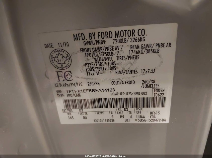• 1FTFX1EF6BFA14123