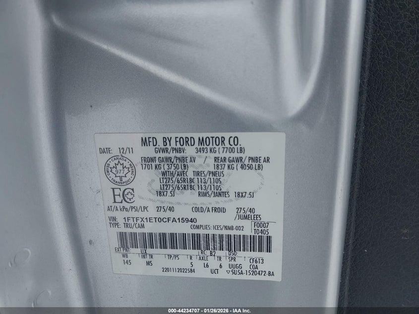 • 1FTFX1ET0CFA15940