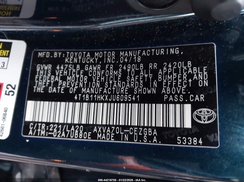 • 4T1B11HKXJU609541