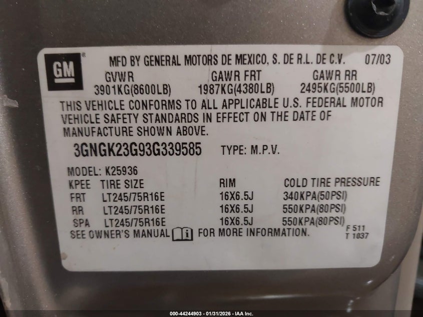 • 3GNGK23G93G339585