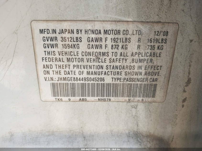• JHMGE88449S045206