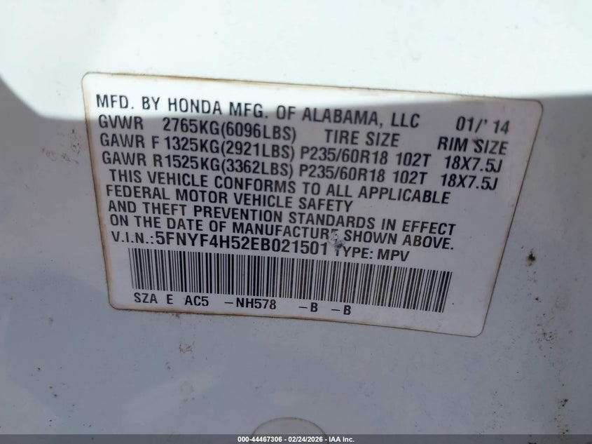 • 5FNYF4H52EB021501