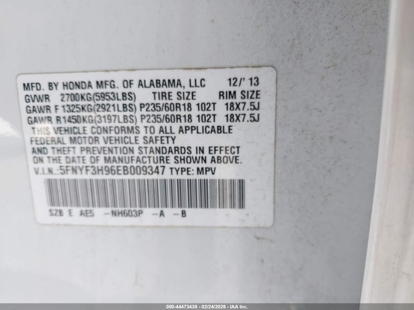 • 5FNYF3H96EB009347