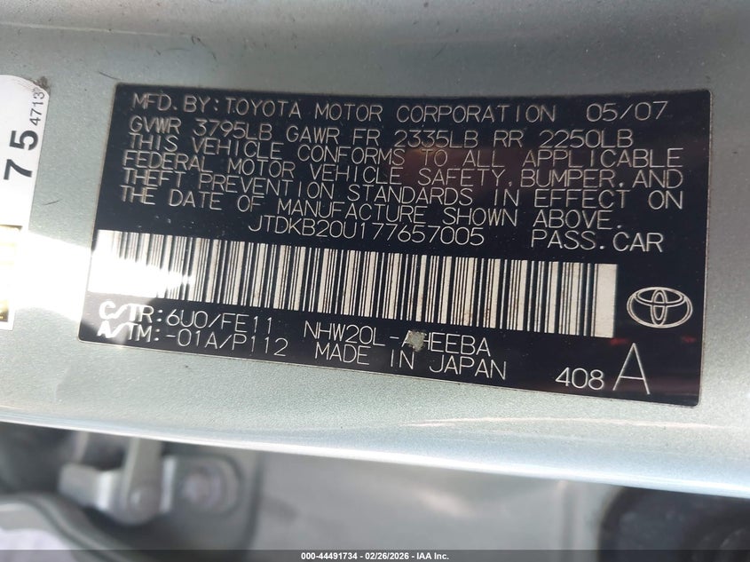 • JTDKB20U177657005