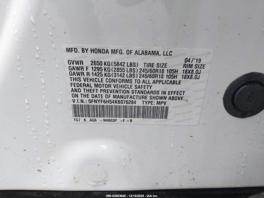 • 5FNYF6H54KB076264