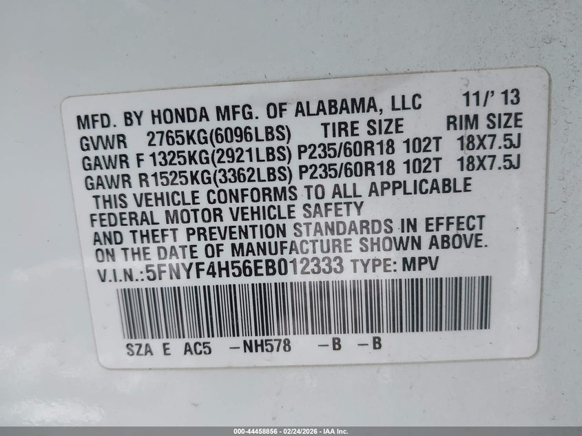 • 5FNYF4H56EB012333