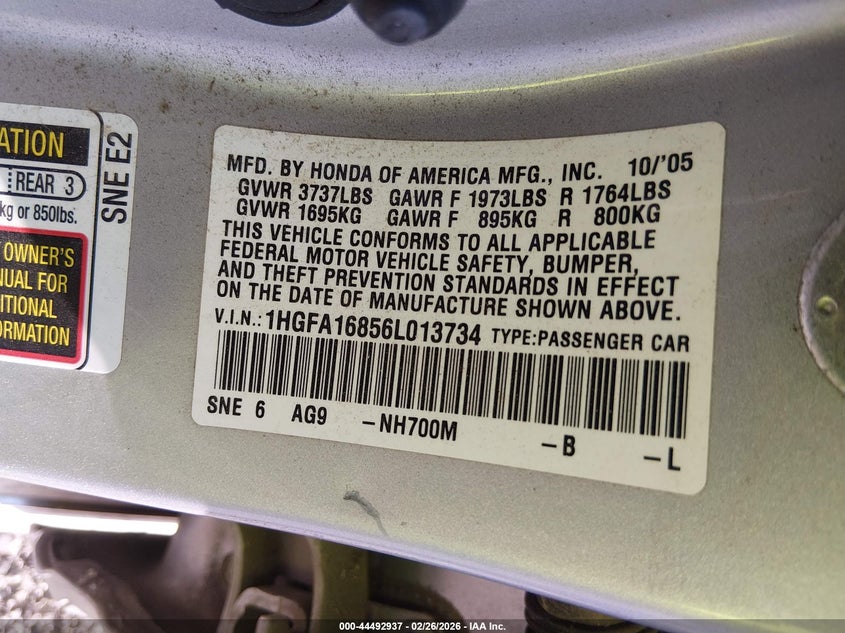 • 1HGFA16856L013734