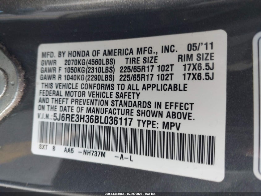 • 5J6RE3H36BL036117