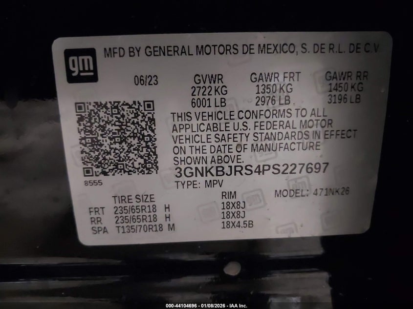 • 3GNKBJRS4PS227697
