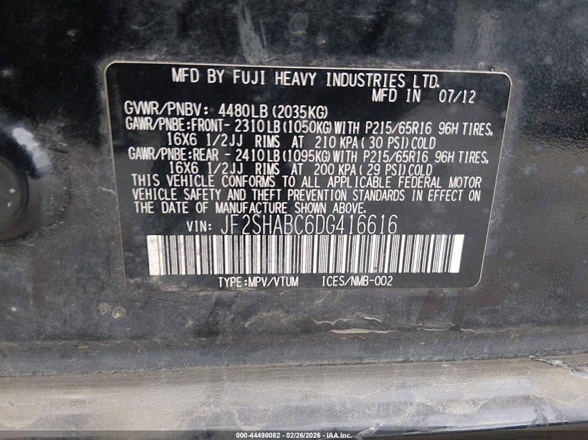 • JF2SHABC6DG416616