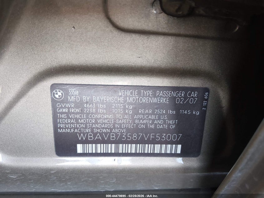 • WBAVB73587VF53007