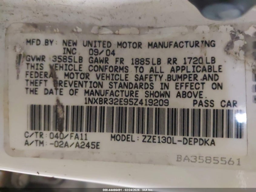 • 1NXBR32E95Z419209