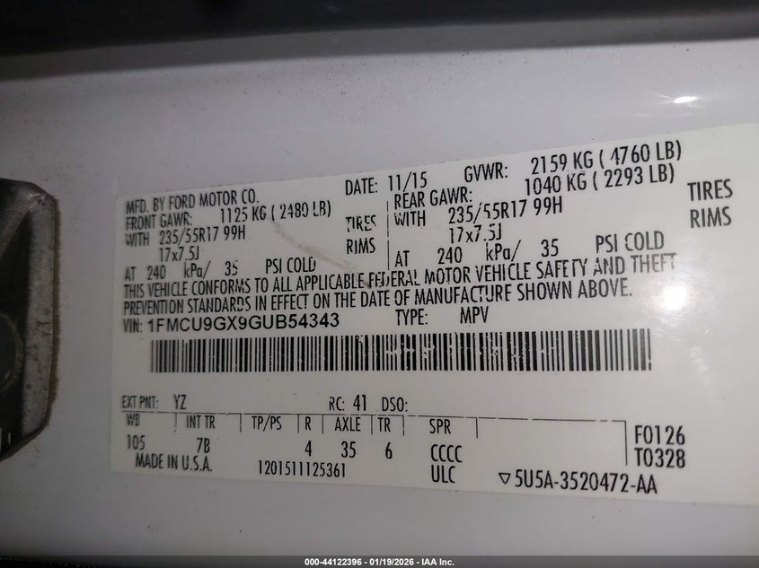 • 1FMCU9GX9GUB54343