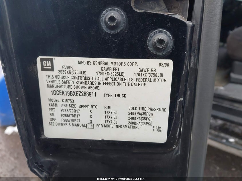 • 1GCEK19BX6Z268911
