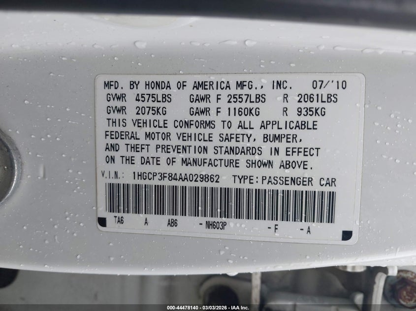 • 1HGCP3F84AA029862