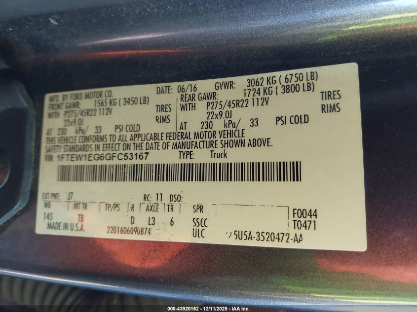 • 1FTEW1EG6GFC53167