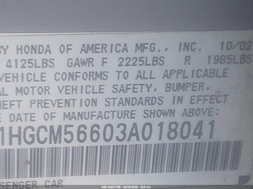 • 1HGCM56603A018041