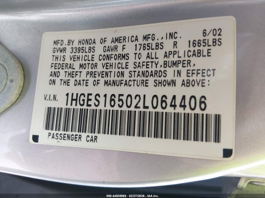 • 1HGES16502L064406