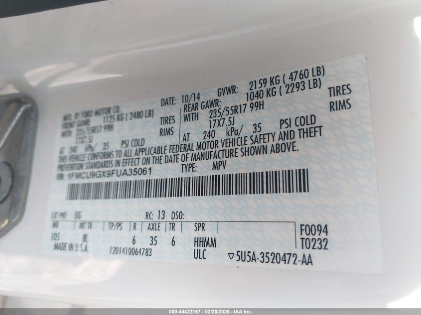 • 1FMCU9GX9FUA35061