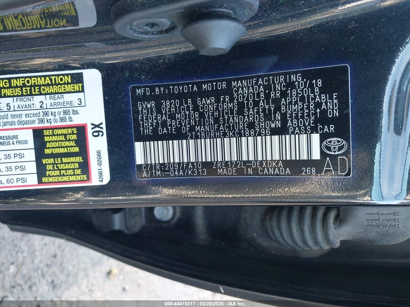 • 2T1BURHE3KC188796