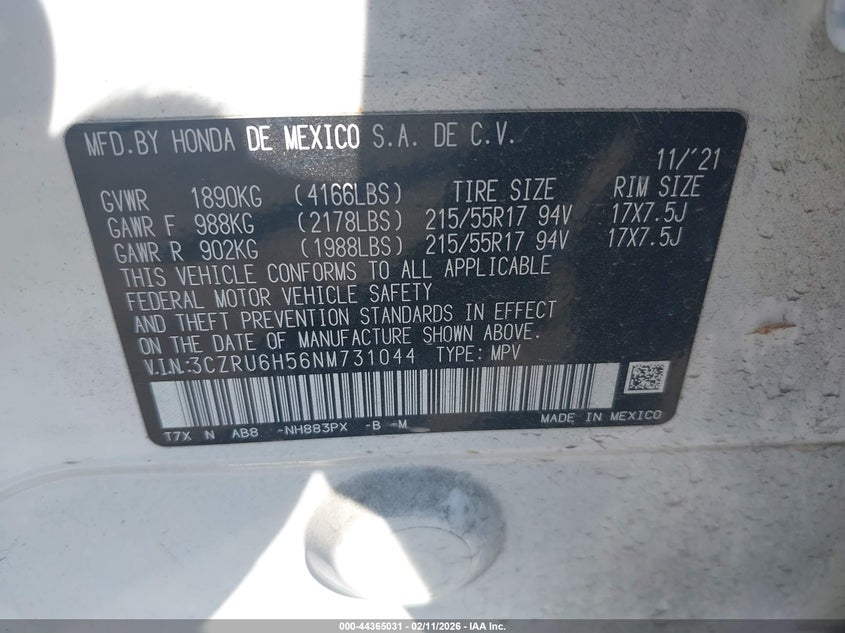 • 3CZRU6H56NM731044