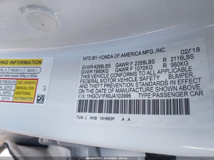 • 1HGCV1F60JA103996