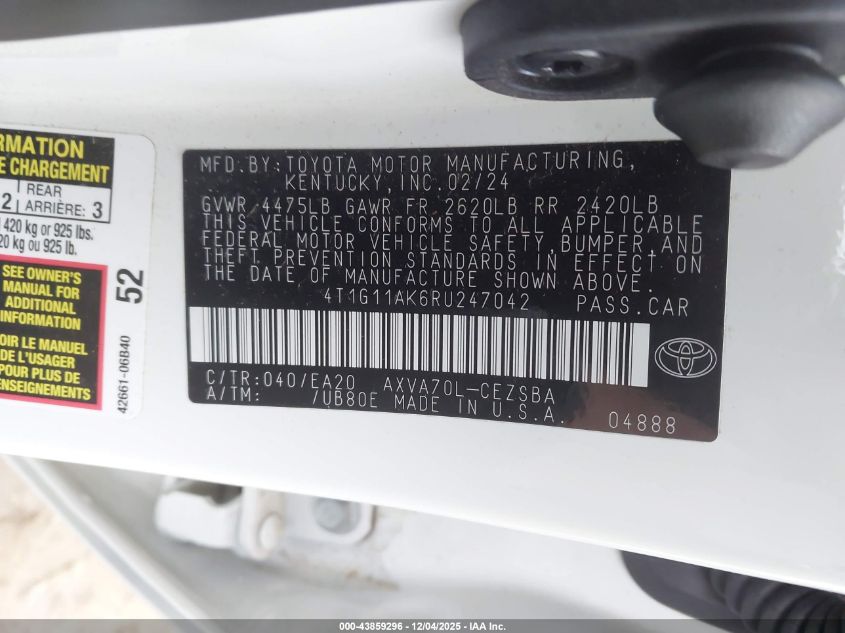 • 4T1G11AK6RU247042