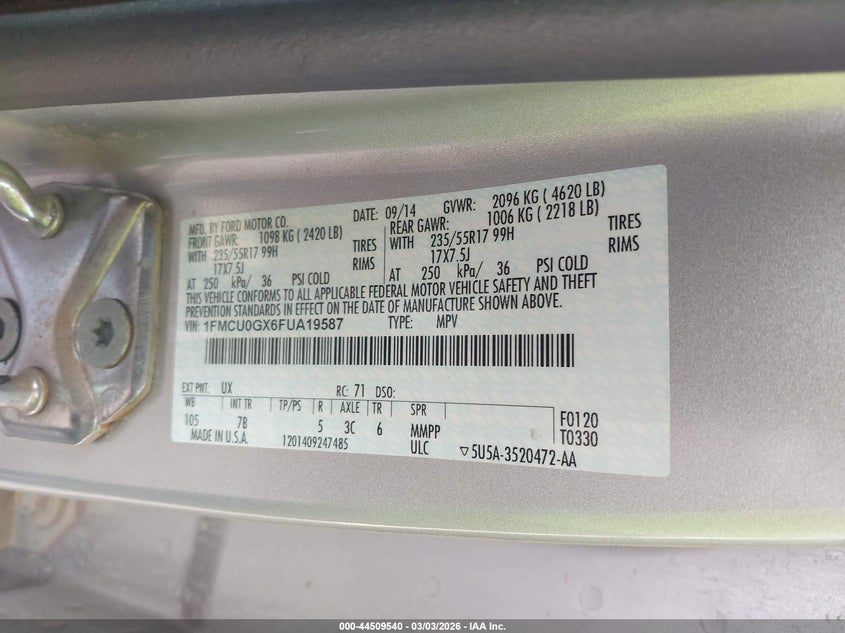 • 1FMCU0GX6FUA19587