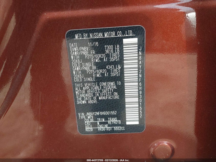 2017 NISSAN ARMADA PLATINUM for Sale in Elkton, MD