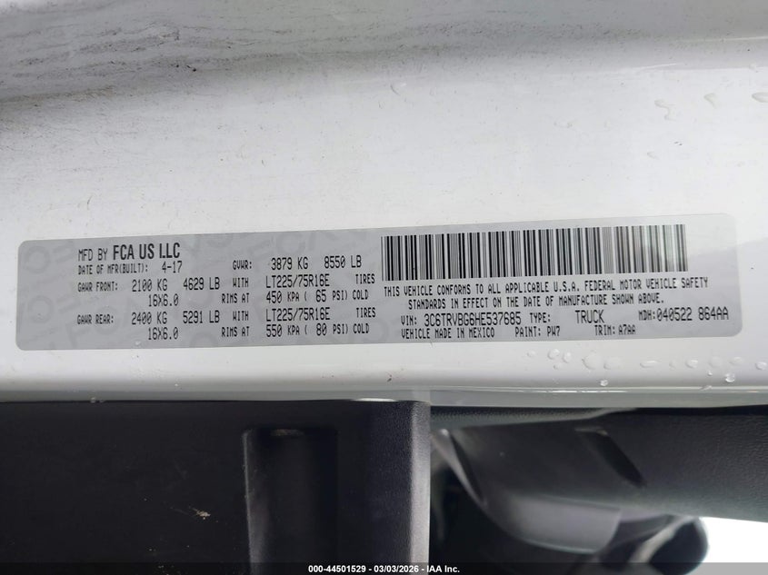 • 3C6TRVBG6HE537685