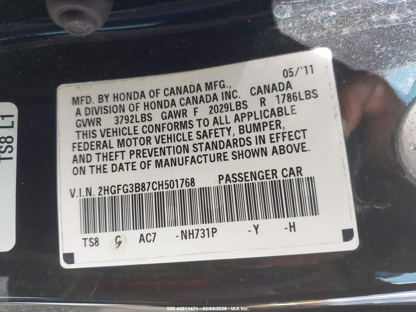 • 2HGFG3B87CH501768