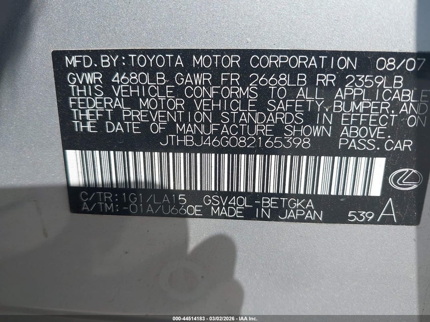 • JTHBJ46G082165398