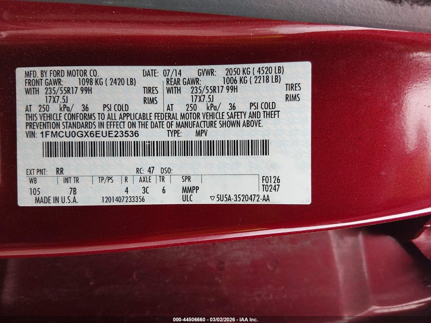 • 1FMCU0GX6EUE23536