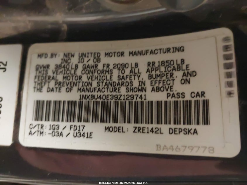 • 1NXBU40E39Z129741