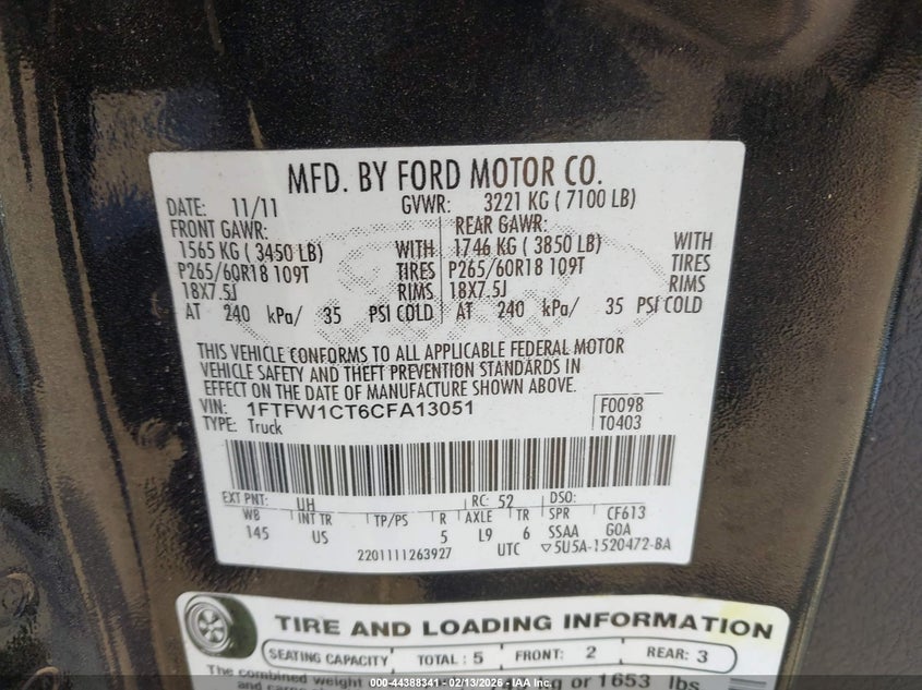 • 1FTFW1CT6CFA13051