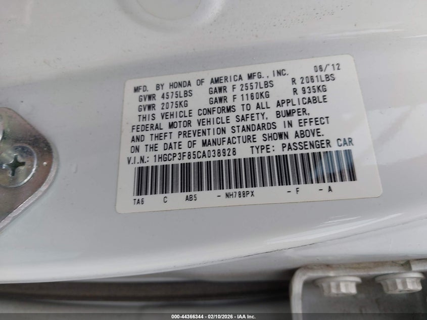 • 1HGCP3F85CA038928