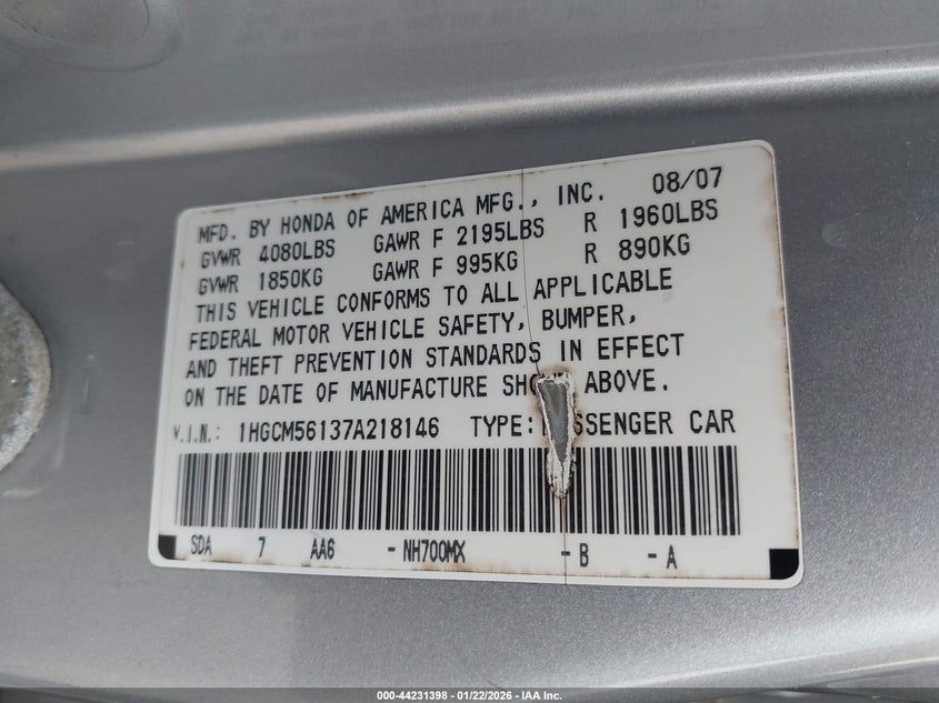 • 1HGCM56137A218146