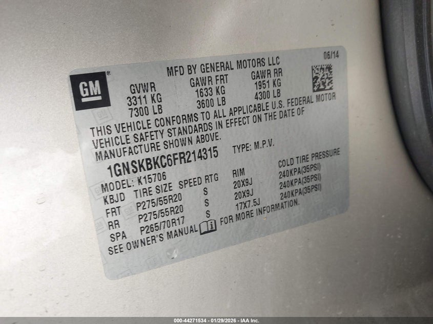 • 1GNSKBKC6FR214315