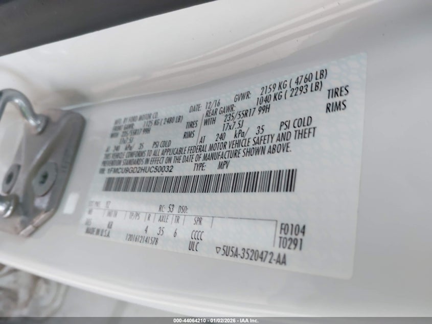 • 1FMCU9GD2HUC50032