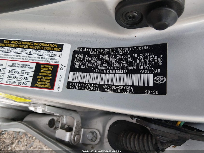 • 4T1BD1FK1EU109347