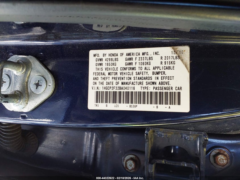 • 1HGCP2F32BA040116