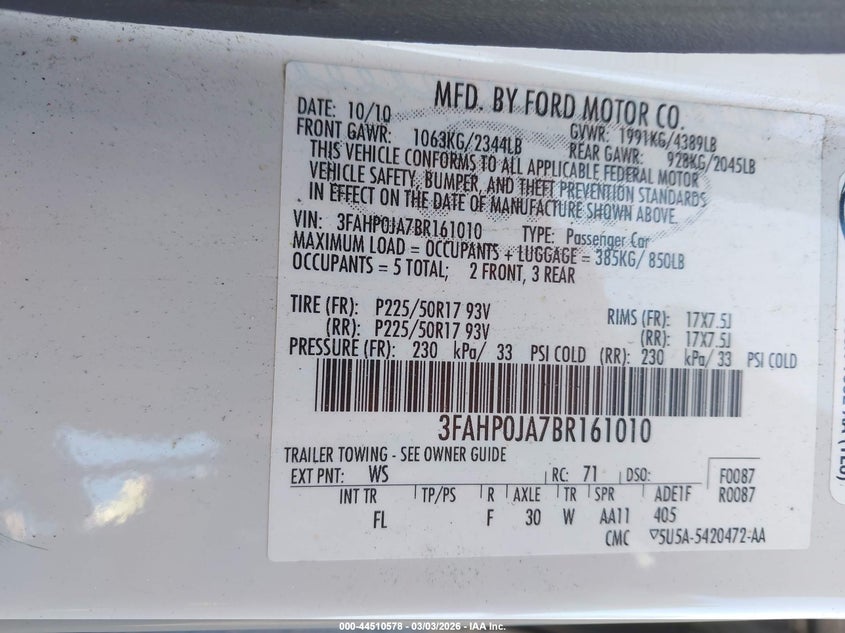 • 3FAHP0JA7BR161010
