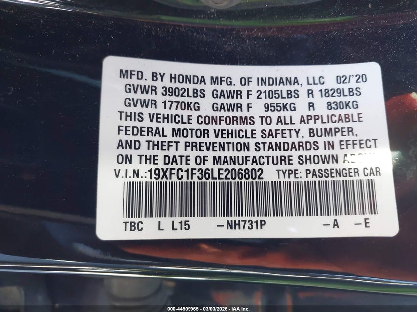 • 19XFC1F36LE206802