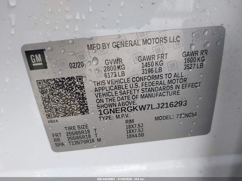• 1GNERGKW7LJ216293