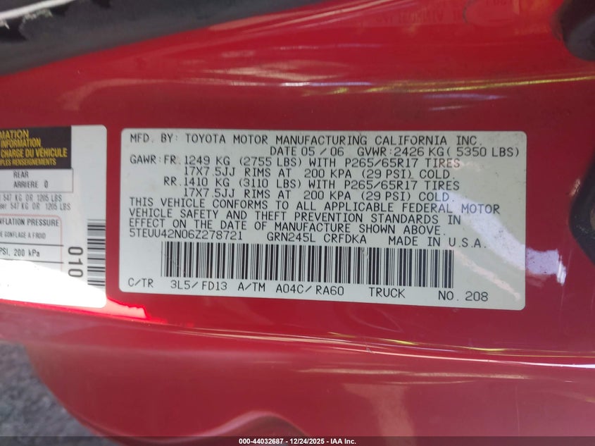 2006 TOYOTA TACOMA BASE V6 for Sale in Kapolei, HI