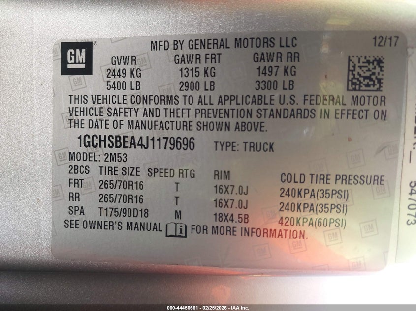 • 1GCHSBEA4J1179696