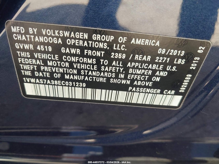 • 1VWAS7A38EC031239