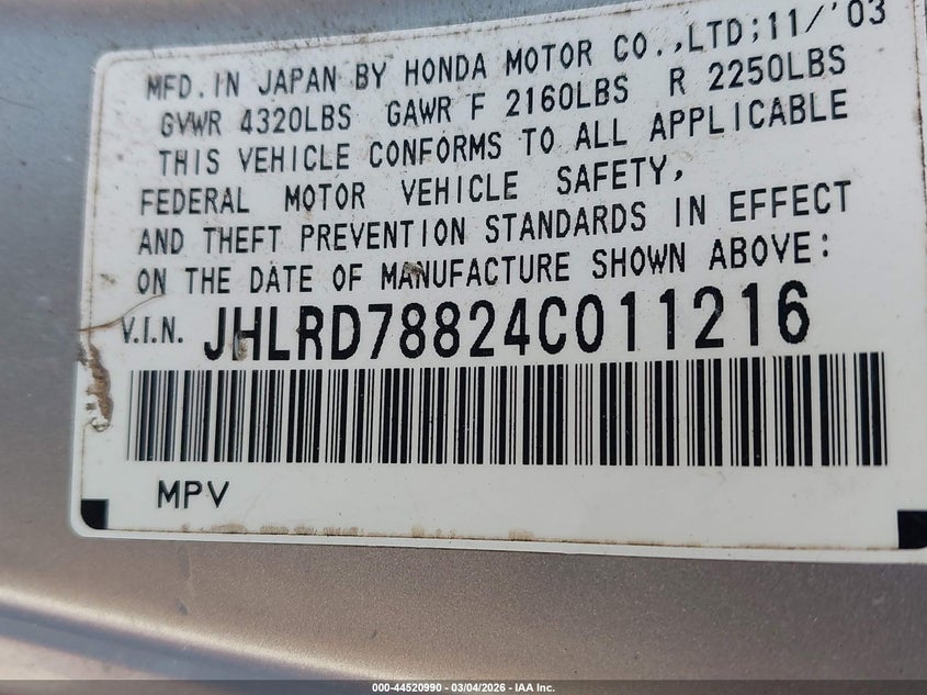 2004 HONDA CR-V EX for Sale in Lexington, SC